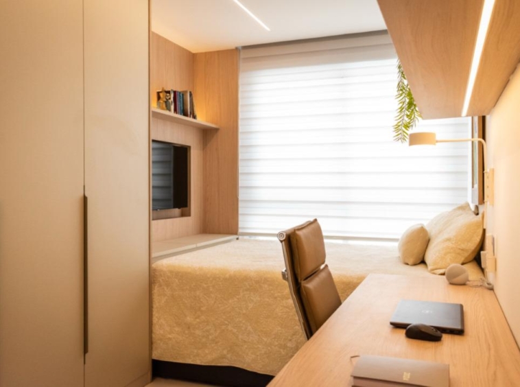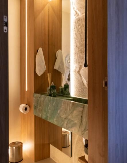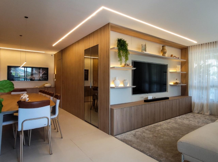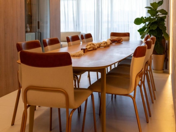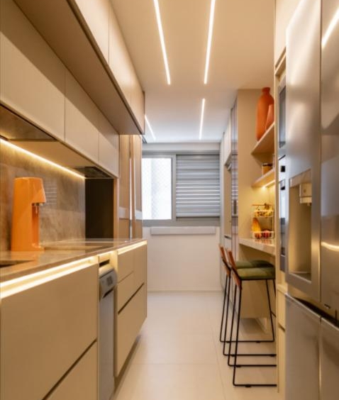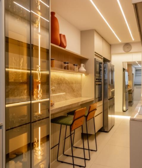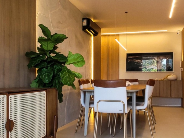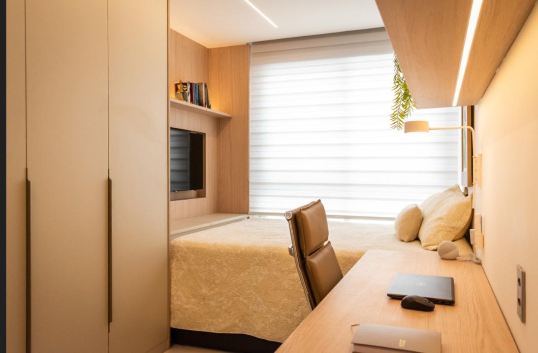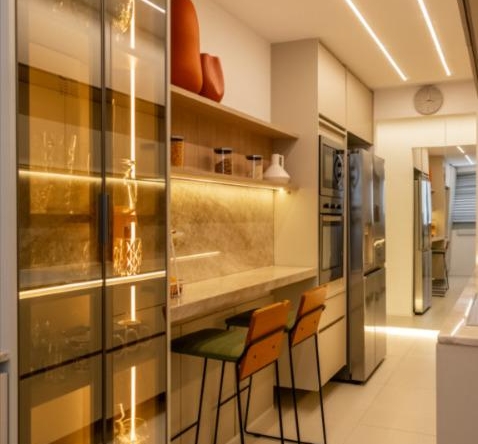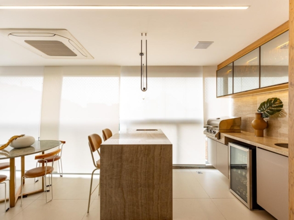 Totalmente reformado, o imóvel conta com acabamentos de alto padrão, marcenaria sob medida com apenas um ano de uso, climatização e um design elegante e atemporal. A dependência foi convertida em despensa planejada, otimizando o espaço e a organização. O apartamento dispõe ainda de duas vagas de garagem.